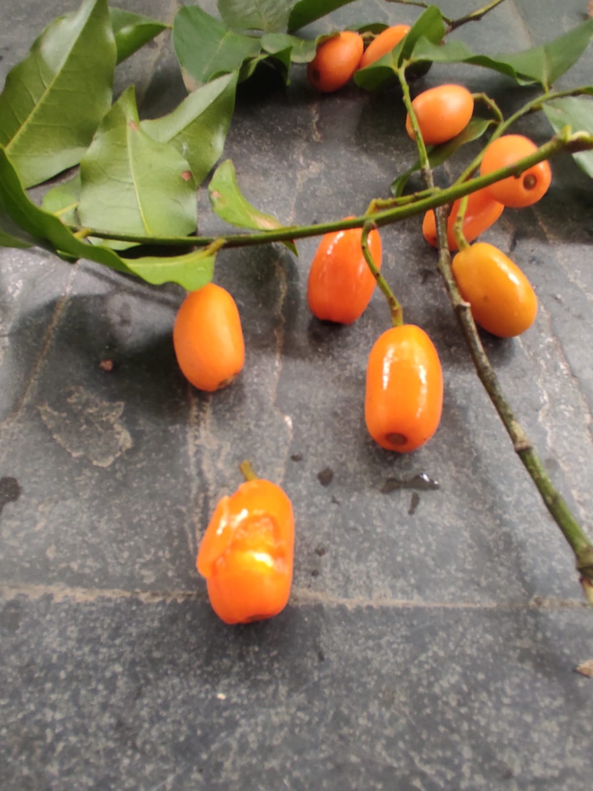Dulacia papilosa is a rare and little-known fruit species native to South America, particularly the Atlantic Forest region. The image shows its vibrant, bright orange fruits, which are oval-shaped and grow in small clusters on leafy branches. The fruits are visually appealing, with a shiny exterior and juicy pulp. Typically understory plants or small trees, species in the Dulacia genus are known for thriving in humid, tropical environments. The fruit of D. papilosa is sweet and edible, though it remains scarcely studied and cultivated, making it an exciting discovery for fruit collectors and those interested in Amazonian or Atlantic Forest biodiversy.