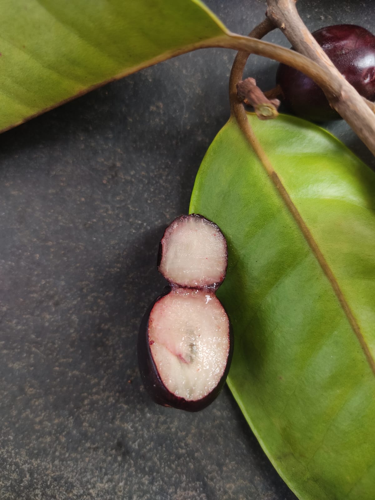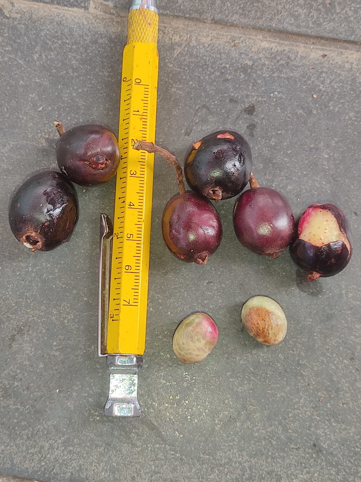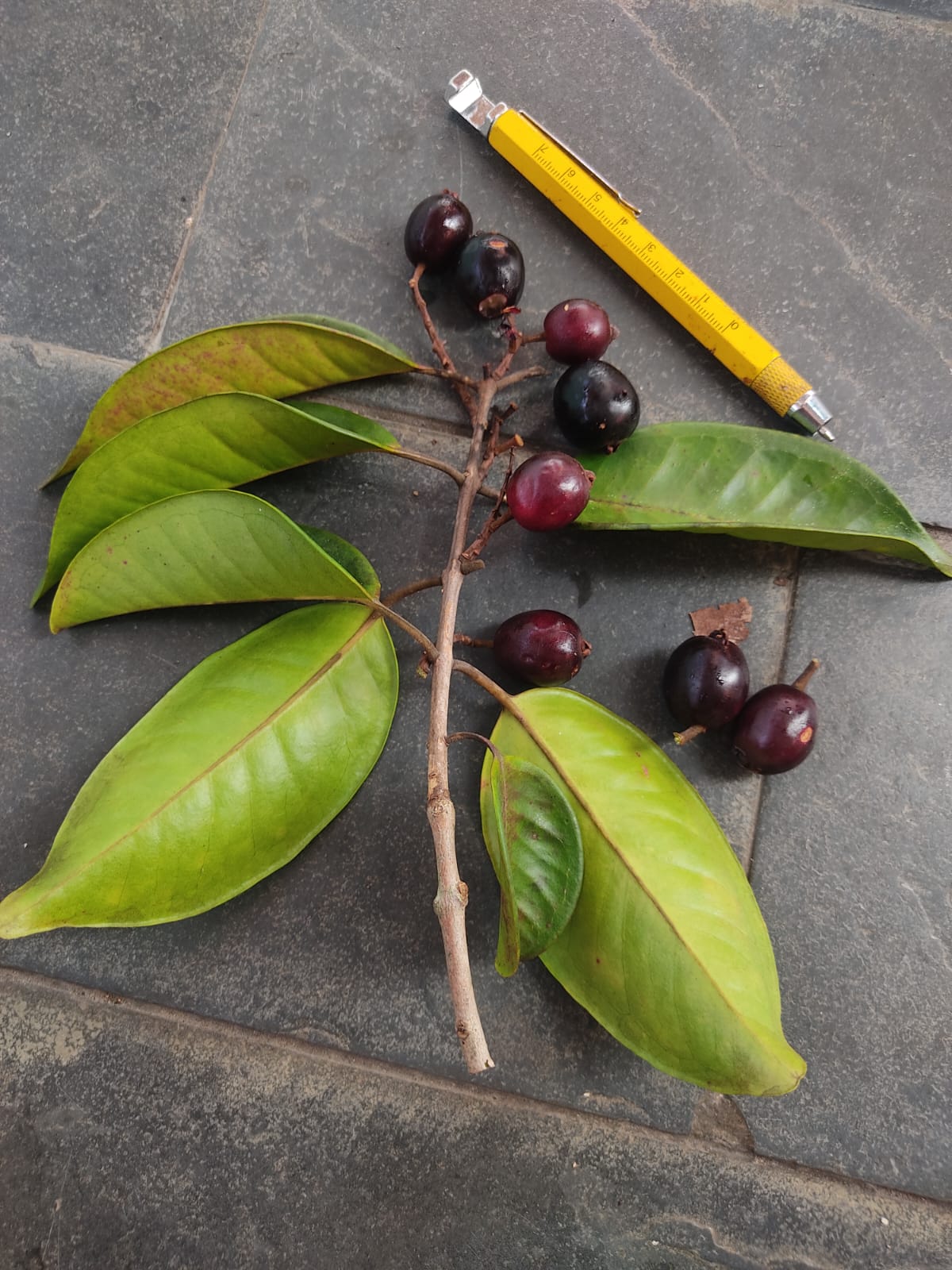 Eugenia sect. Racemosa var. Itacaré is a small tree reaching about 8 meters in height, native to the Atlantic rainforest near Itacaré, Bahia. This variety stands out for its sweet fruits with a pulp that evokes the classic flavor of pitanga, though milder and more refined. The glossy, purplish fruits grow in small clusters along elegant branches adorned with smooth, shiny leaves. With its manageable size, attractive foliage, and delicious fruits, it is a promising candidate for both edible landscaping and Myrtaceae collections.