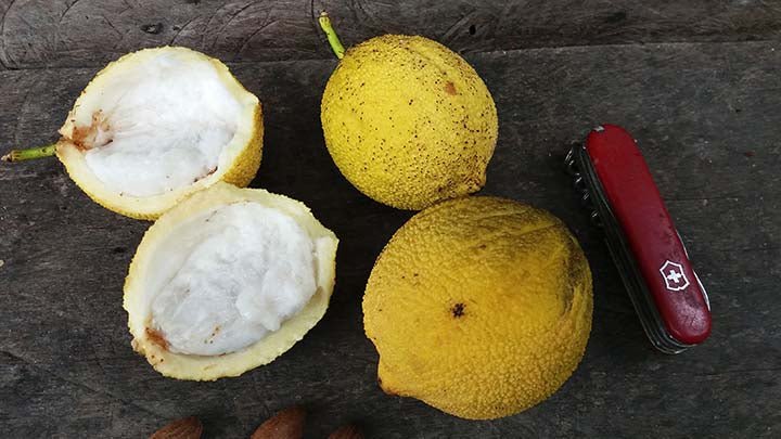 The edible portion of the fruit is approximately 28% by weight, which is similar to the weight of the edible portion of Garcinia humilis (Achachairu).