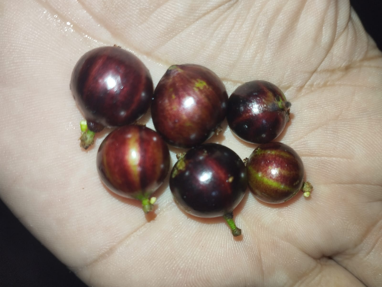 Plinia sp. "Olho de Gato" is a rare and visually distinctive jabuticaba native to the Atlantic Forest of Bahia, Brazil. Growing as a small to medium-sized tree, it features a dense, compact canopy typical of the Plinia genus and thrives in humid tropical and subtropical conditions. Its round, dark fruits are marked by a fine green or yellowish line down the middle—evocative of a cat’s eye, hence its name. With a sweet, mildly acidic flavor and a unique aesthetic, "Olho de Gato" stands out as a must-have for collectors and enthusiasts of rare Brazilian fruits.