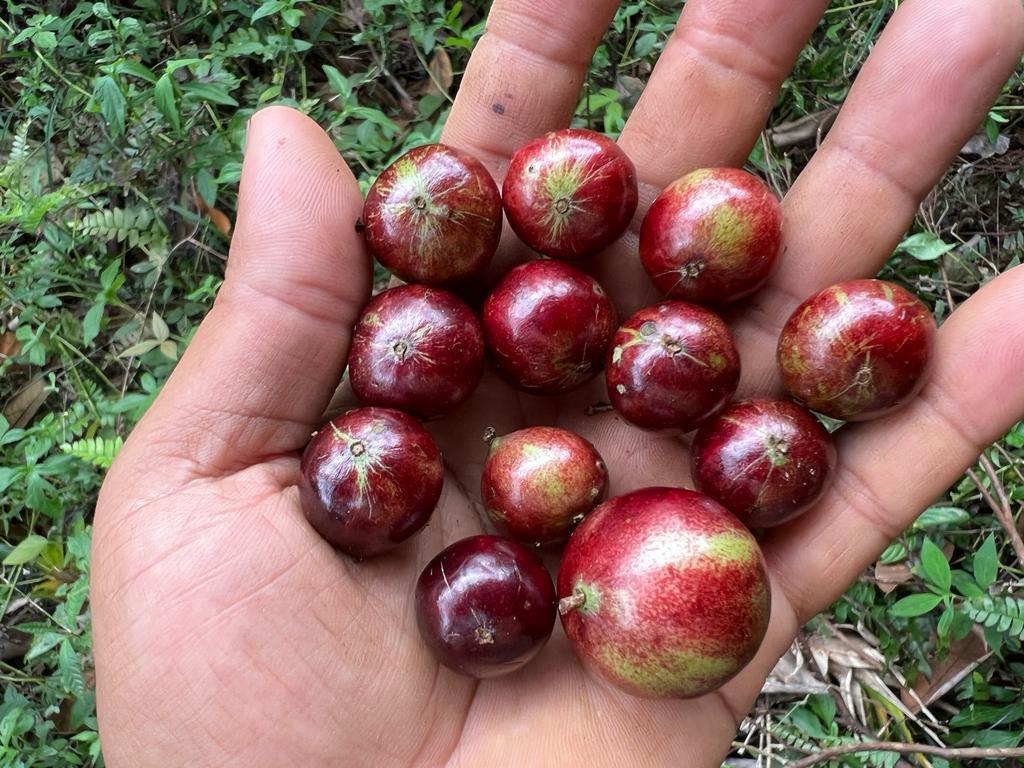 Plinia sp. "Tigrada Vermelha" is a sensational and rare jaboticaba variety that captivates with its vibrant red color and exceptional flavor. Found growing wild in native forest, this striking fruit stands out for both its ornamental beauty and taste, earning a spot as the 7th favorite jaboticaba of the collector who discovered it. With its bright red skin and rich, flavorful pulp, Tigrada Vermelha is a true gem for enthusiasts seeking uncommon, high-quality Plinia varieties that bridge the line between wild biodiversity and elite collection potential.